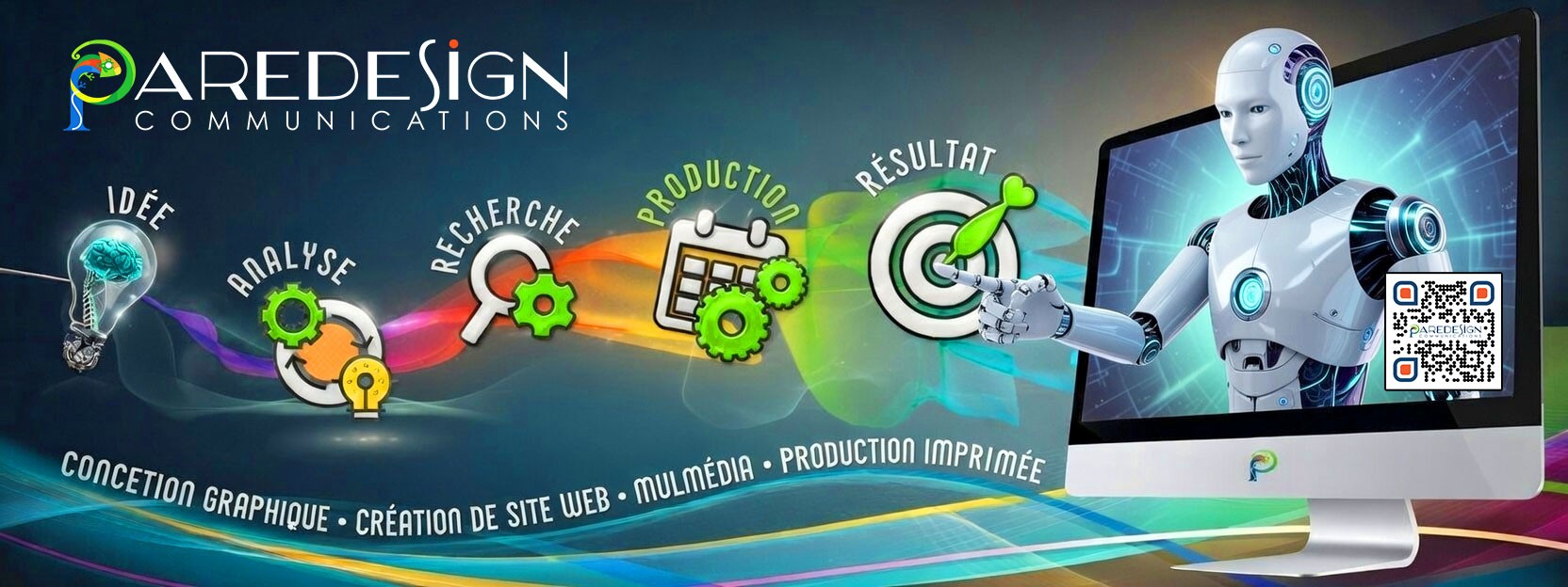 Paredesign Communications est une entreprise de design graphique basée à Montréal. Nous nous engageons à créer des designs uniques et personnalisés qui reflètent l'image de nos clients. Notre équipe est composée de jeunes créateurs passionnés et dynamiques, qui offrent une expertise de pointe pour répondre aux besoins d'un monde connecté, diversifié et en constante évolution. Nous sommes fiers de proposer des services de qualité qui vont au-delà des attentes de nos clients, tout en valorisant leur identité visuelle.